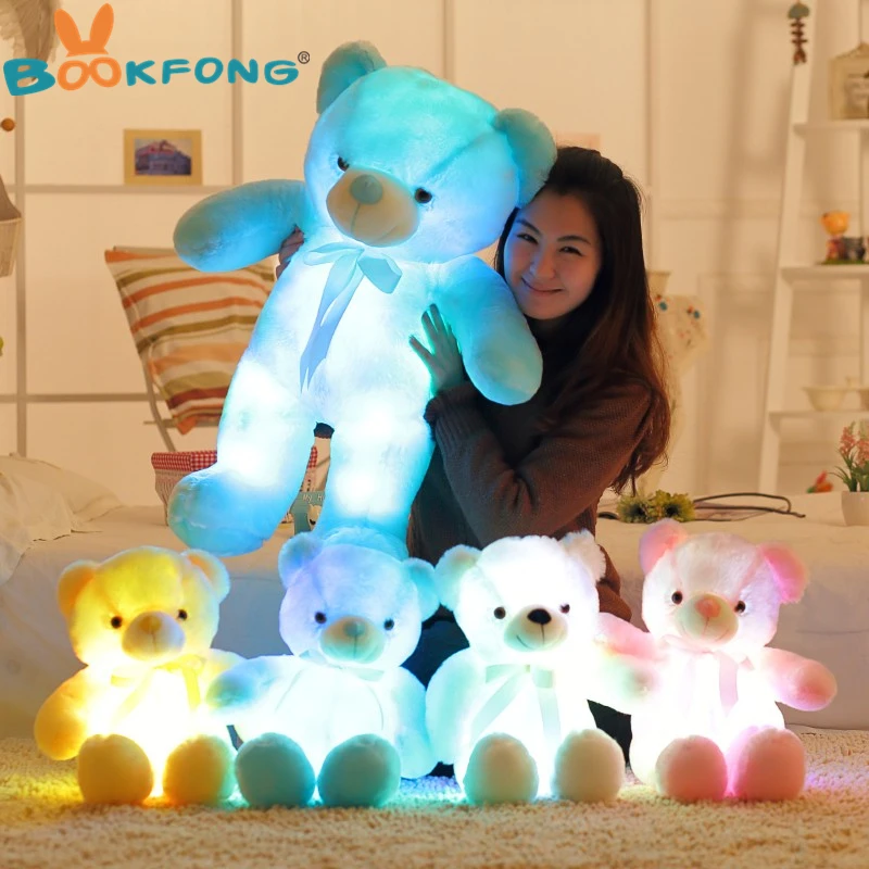 Creative Light Up LED Inductive Teddy Bear Stuffed Animals Plush Toy Colorful Glowing Teddy Bear